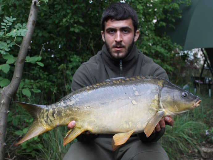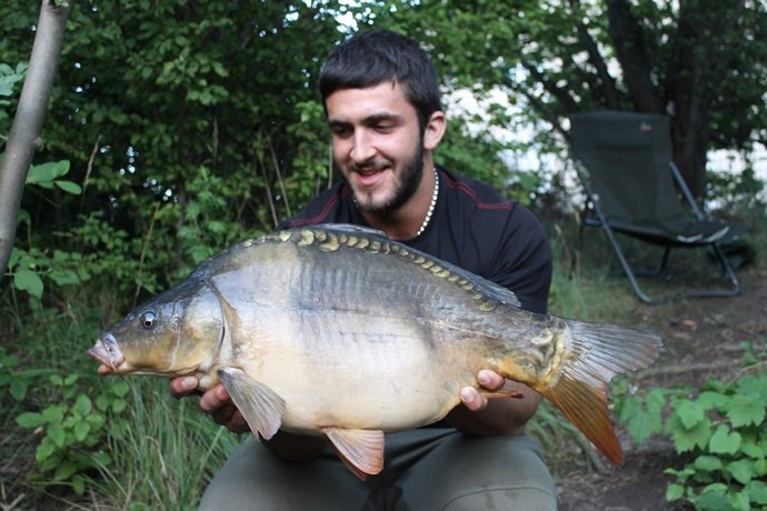 Gegen achtwar es dann endlich wieder soweit, die Funkbox schrie auf und nach einem netten Drill kam der wohl schönste und „größte“ Saugrüssler auf die Matte. Es war sogar ein Two Tone! Gerade als Gregor das letzte und perfekte Foto schoss, ging die andere Rute ab. Jedoch war auch das wieder nur ein kleiner Karpfen mit etwa zwei Kilo.